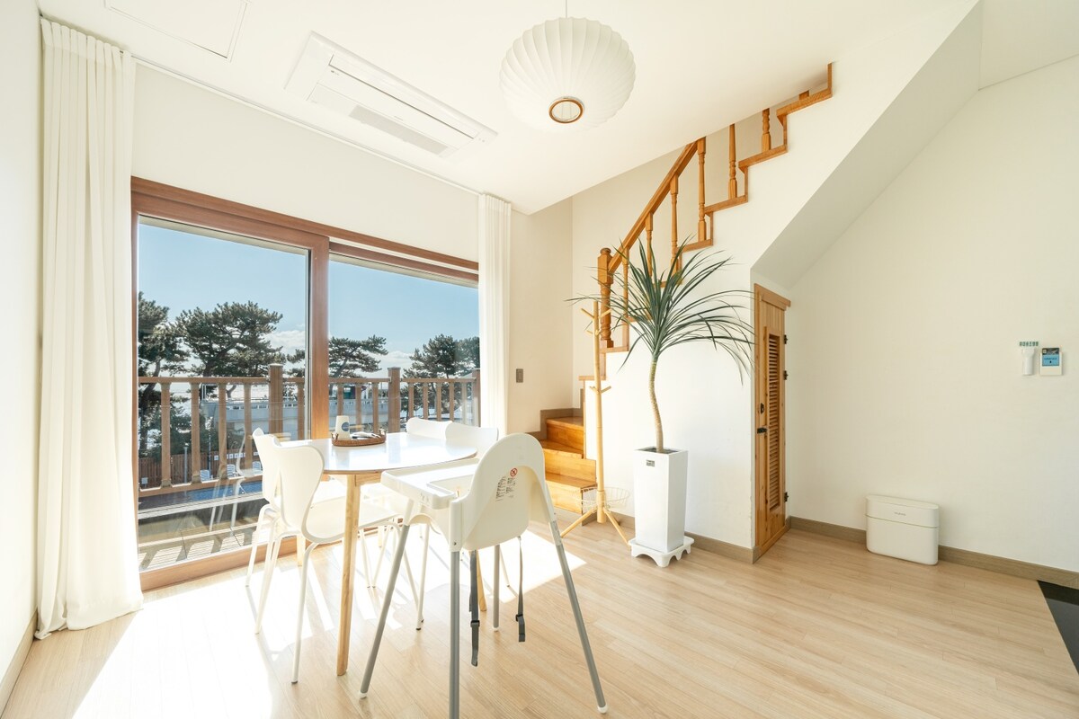 쇠소깍 엘마르 펜션 102호 | 바다뷰 따뜻하고 조용한 복층 수영장