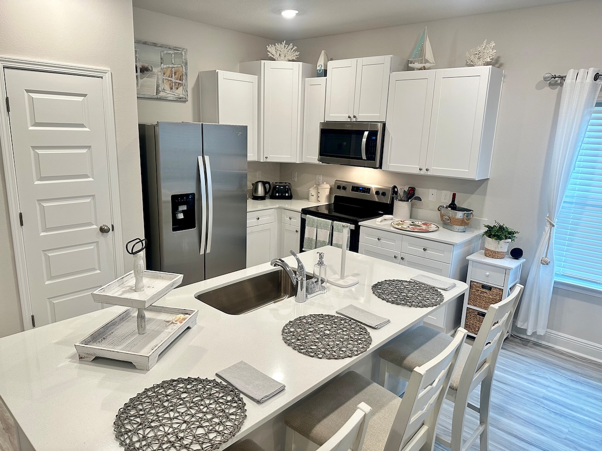 The Breeze is a brand new townhome perfect for a serene getaway offering a family friendly, flawless mix of comfort and style with its three cozy and relaxing bedrooms, 2.5 baths, spacious living areas, and a chef's kitchen. Ideally located in Gulf Breeze, FL minutes away from the beautiful beaches of Navarre and Pensacola, close to shopping, dining and parks makes this a convenient and delightful home away from home in a coastal paradise.