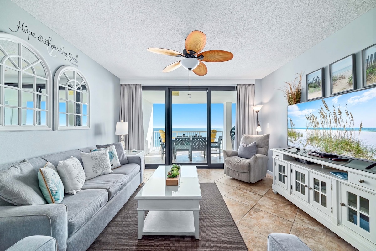Reúne a toda la familia en este hermoso y cuidadosamente diseñado condominio frente a la playa. Ofrece vistas espectaculares, múltiples áreas de estar generosas y comodidad para todas las generaciones. Con espacio para reunirse y espacio para relajarse, este alojamiento es perfecto para que abuelos, padres e hijos o grupos de amigos compartan días inolvidables en la playa para disfrutar juntos sin sentirse abarrotados. Con vistas panorámicas desde las ventanas del piso al techo, este espacioso condominio ofrece un paisaje impresionante desde el amanecer hasta el atardecer.