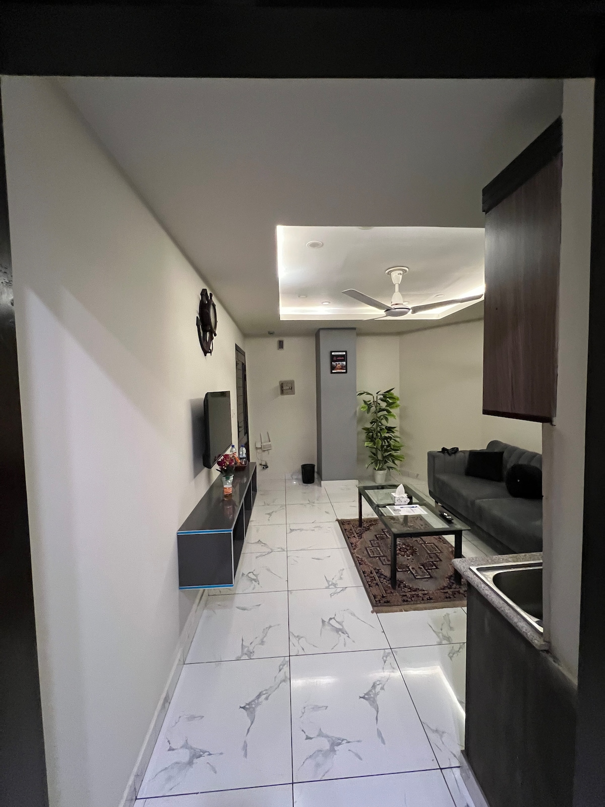 Aquí está tu apartamento de 1 BHK en Bahria Town Fase 1, Islamabad Ubicación 📍privilegiada: a solo 5 minutos de GT Road, además, el edificio tiene su propia cadena de alimentos, Cash & Carry, farmacia, piscina, gimnasio Información sobre el departamento • 📺Entretenimiento: TV 4K de 70 pulgadas con Netflix incluido. • ❄️Comodidad: aire acondicionado con inversor y duchas con agua caliente con calentador de agua eléctrico • Estacionamiento 🚘seguro: estacionamiento cerrado gratuito disponible. • 🔐Acceso sin complicaciones: llegada autónoma a través de la entrada con teclado. • Luz solar 🌅natural a través de elegantes aberturas en las paredes