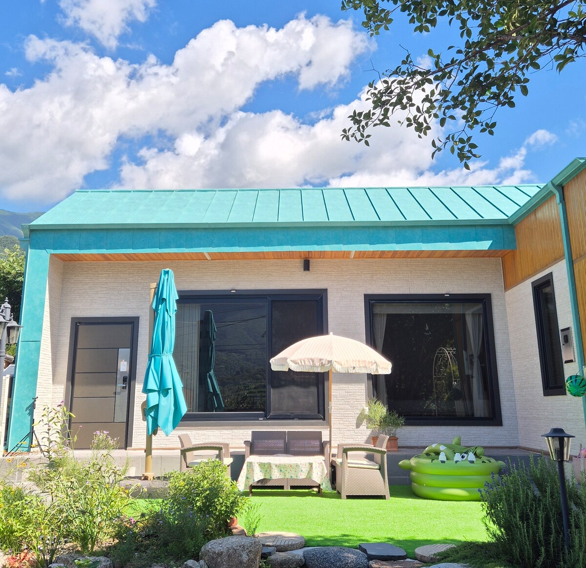 Cheonghak-gol Bed and Breakfast. Nuevo edificio. 30 pyeong. Junto al valle. Piscina solo para niños en verano.
