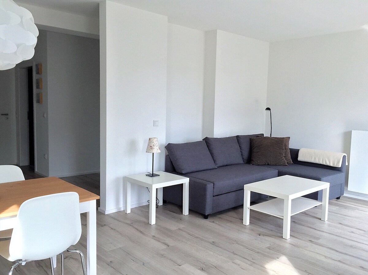 NEU: Free Wallbox EV, einmalig pro Aufenthalt 20 KW kostenlos aufladen (Mindestdauer 2 Nächte) Sehr nette, separate 2Zimmer, Küche, Bad-Whg mit eigenen Eingang, KINGSIZE-BOXSPRINGBETT, 2 Couches, davon 1 ausziehbares neues breites Schafsofa für weitere 2 Personen im modernen Wohnzimmer, Einbauküche, neues Bad, 43-Zoll Sat-TV, WLAN-Zugang, Rauchen auf Terrasse,Key-Safe, Tresor HANDWERKER: getrenntes Schlafen möglich! Bettwäsche und Handtücher inclusive