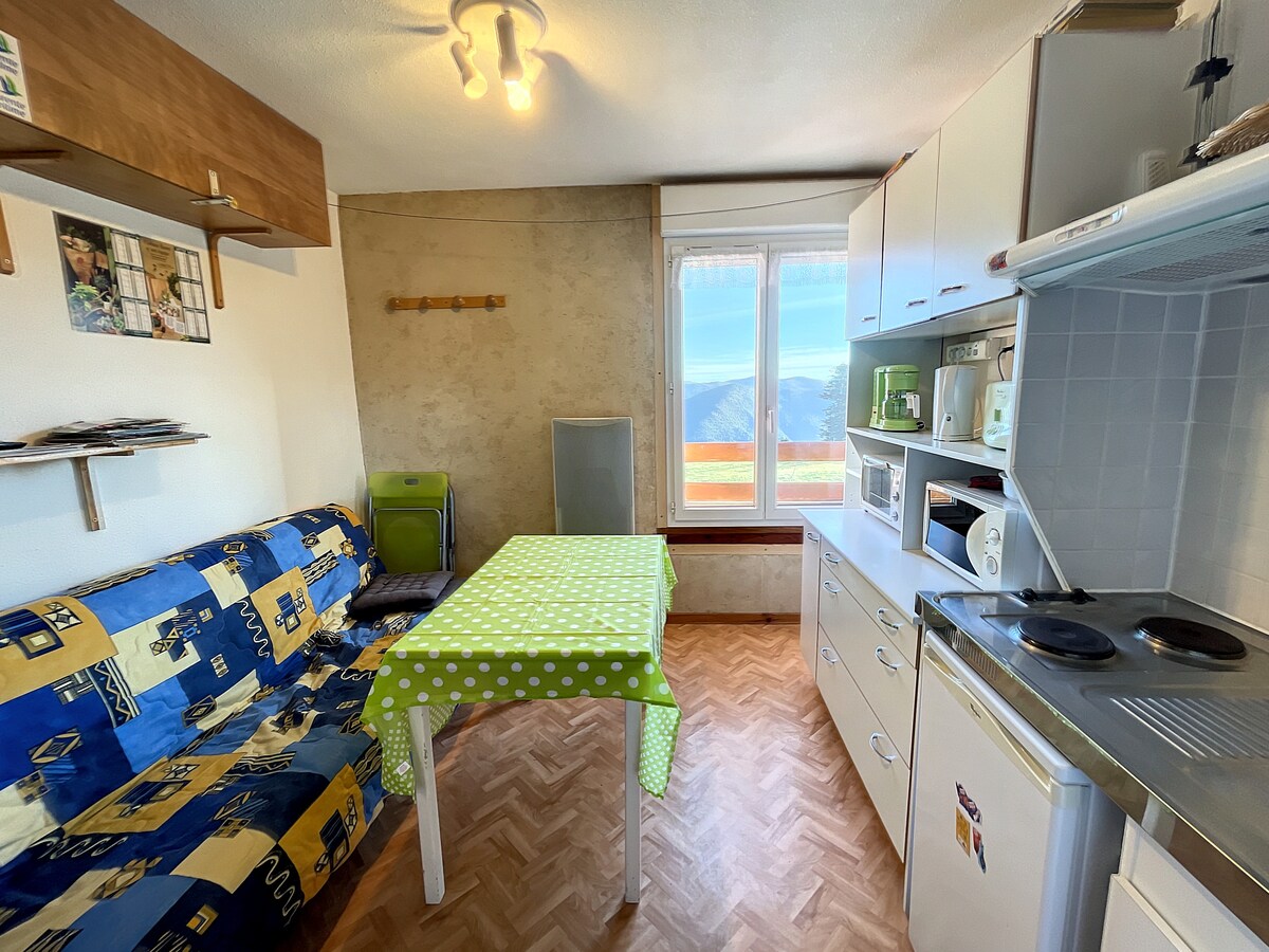 Venga a alquilar este hermoso estudio de 25 m² con su balcón que ofrece una magnífica vista de las pistas de esquí. Consta de cocina totalmente equipada (tostadora, microondas, lavavajillas, cafetera...), baño con inodoro. Con capacidad para dos personas, será ideal para hacerle pasar sus mejores vacaciones. Las tiendas y actividades están cerca (en la parte inferior de la residencia). No se proporcionan sábanas.