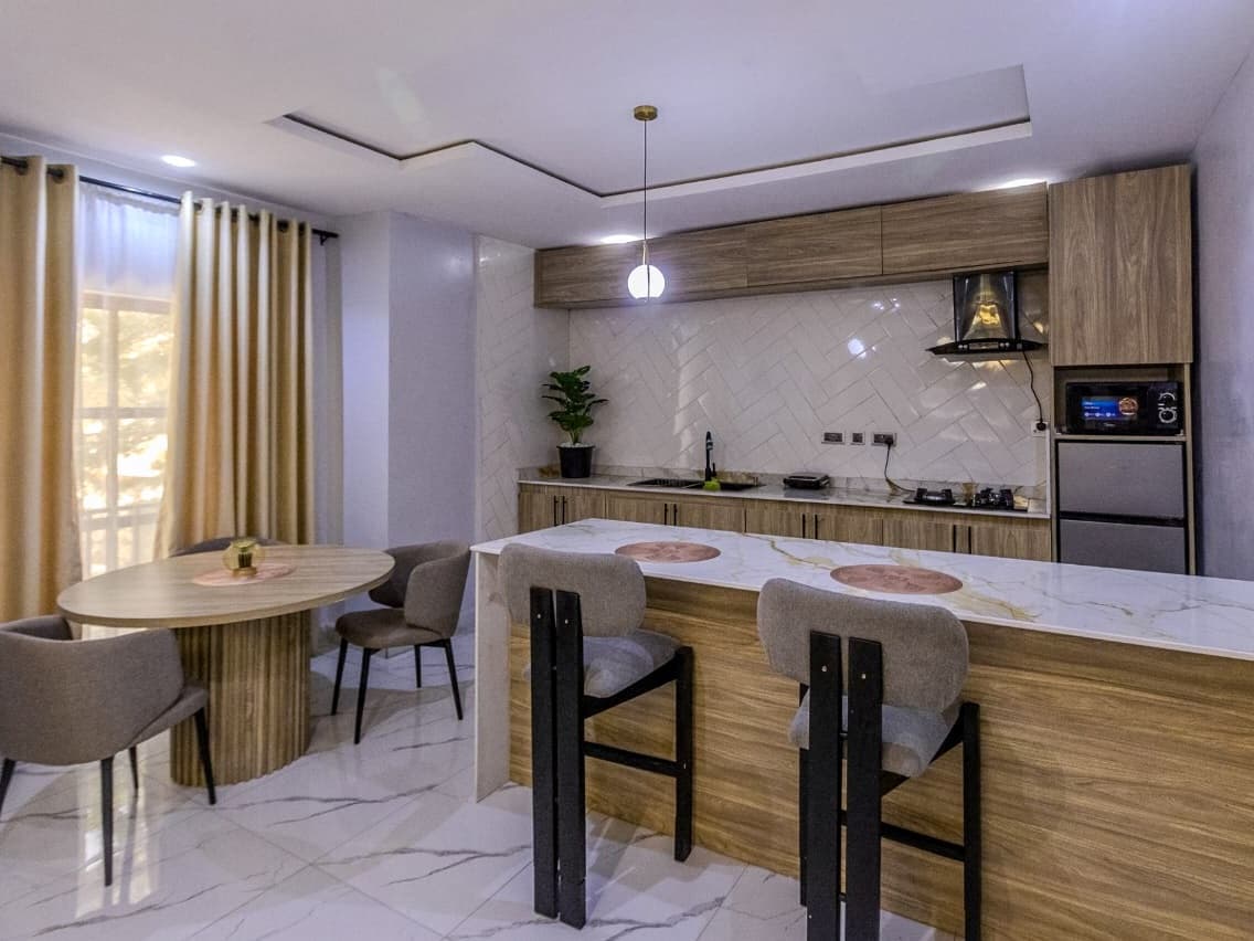 Escapa del ajetreo de la ciudad en este espacioso y elegante departamento tipo estudio. La estética contemporánea de este espacio es perfecta para escapadas en pareja o para viajeros solitarios. Está totalmente amueblado y ubicado en una finca segura. El espacio cuenta con wifi gratuito y superrápido, así como con un amplio estacionamiento. La cocina está equipada con equipos modernos para tu comodidad. Con electricidad las 24 horas, los 7 días de la semana, nuestro televisor inteligente y otras lujosas comodidades, este alojamiento es un hogar lejos de casa, con las comodidades de una suite de hotel de ensueño.