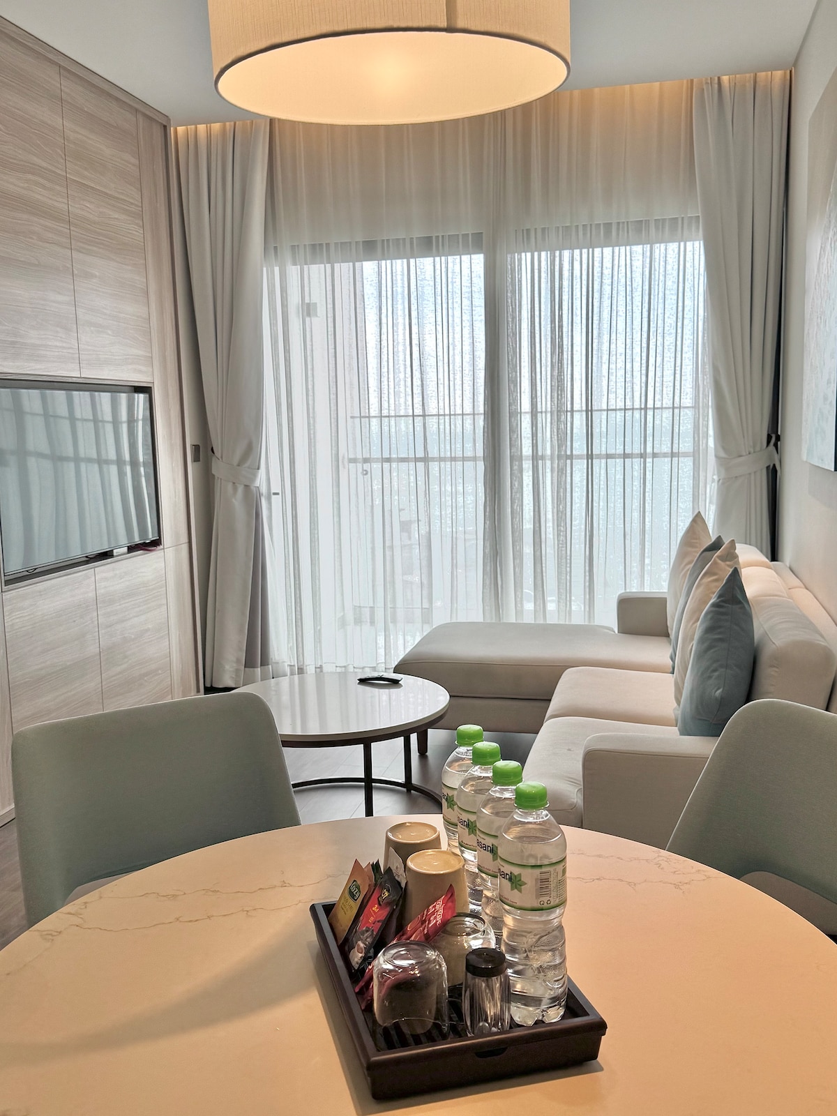 El departamento se encuentra en Halong Marina, en la zona de Bai Chay, a pocos pasos de la playa y cerca de los puertos de cruceros para los recorridos por la bahía de Ha Long. Ten en cuenta que está a unos 5 km del centro turístico de Bai Chay y a 12 km del centro de la ciudad de Ha Long, ofreciendo una estancia más tranquila lejos de las zonas concurridas. El estudio cuenta con una cama tamaño king, sofá cama, cocina completa, lavadora y baño moderno. Los huéspedes pueden disfrutar de una piscina infinita, jacuzzi, gimnasio, spa y estacionamiento (cargo adicional).