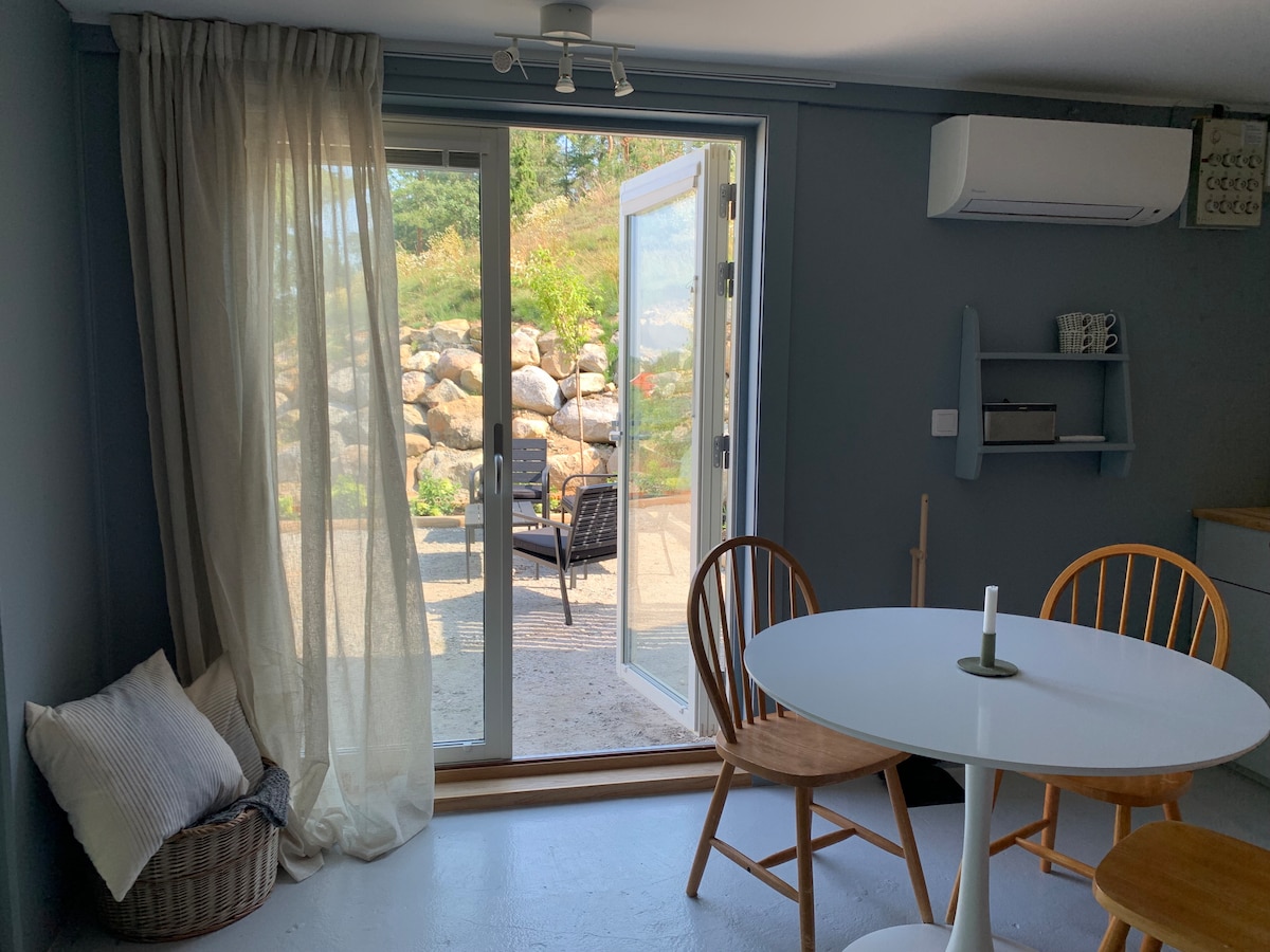Bienvenido a una casa de playa de 32 metros cuadrados con planta abierta y vistas al lago Mälaren. Hay una cocina pequeña con dos fogones, un horno/microondas combinado y una nevera. En la habitación hay una cama de 140 cm, dos sofás y una chimenea. El baño está equipado con inodoro, ducha, lavadora. En el exterior, hay un patio privado con acceso a una playa compartida. NOTA: falta la cortina opaca, así que no dudes en traer una máscara para dormir si eres sensible a la luz. La casa está en una parte de una parcela más grande en una reserva natural.