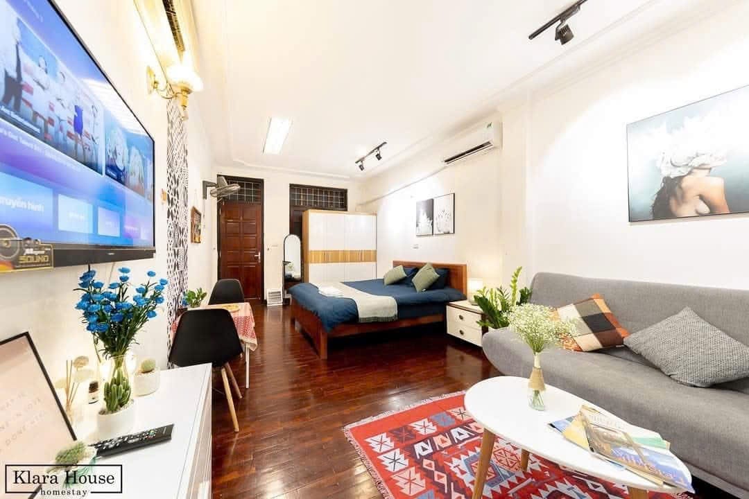 Una habitación estudio increíble, con una decoración preciosa y una hospitalidad de 6 estrellas” - dijeron los huéspedes sobre nuestra increíble casa: - Cuarto piso, sin ascensor. - 30 metros cuadrados de habitación estudio. - Lavadora y secadora gratis y agua de recarga gratis - Cocina totalmente abastecida y equipada. - Guarda equipaje gratis. - Estacionamiento seguro. - A 15 minutos a pie del centro de la ciudad. - A 10 minutos a pie de la estación de tren y del autobús de enlace con el aeropuerto. - Barrio bastante seguro. - Tour HaLong, Ninh Binh... - Servicio de recogida en el aeropuerto (con tarifa) - Tarjeta SIM a la venta