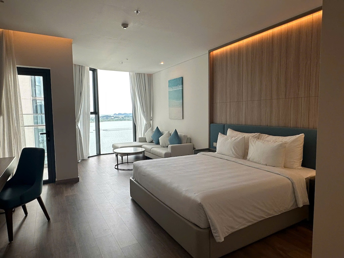 HOTEL CAM BINH – JOYA DORADA EN MEDIO DE QUANG NINH LAND El primer hotel chapado en oro en Quang Ninh con una ubicación conveniente, adecuado para turistas, negocios, conferencias ¡El espacio está diseñado en un estilo moderno, habitación cómoda a un precio que no podría ser más razonable! Promesa de ofrecerte una estancia verdadera y cómoda, como si estuvieras en casa Se ubica en el camino al mar con una vista romántica extrema ❤ El personal profesional siempre está disponible y disponible.