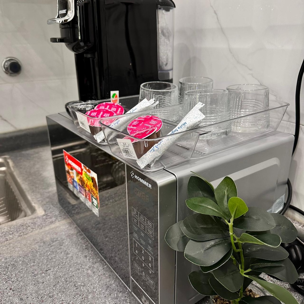 Una acogedora escapada al hotel sin recepción con dos dormitorios, salón, cocina, hervidor de agua, mesa de comedor, sesión al aire libre con estufa, entrada al coche y todo lo que necesitas de TV, nevera, lavadora, microondas, cafetera, té, hervidor de agua y todo tipo de ambientadores, de velas, incienso y baño, así como de todo lo que necesitas de artículos de cuidado personal “Cepillo, champú, acondicionador, esplendor y toallas” para convertirse en una de las mejores opciones después de un largo día de trabajo, y pasar las horas de la noche con comodidad y recreación hasta el día siguiente.