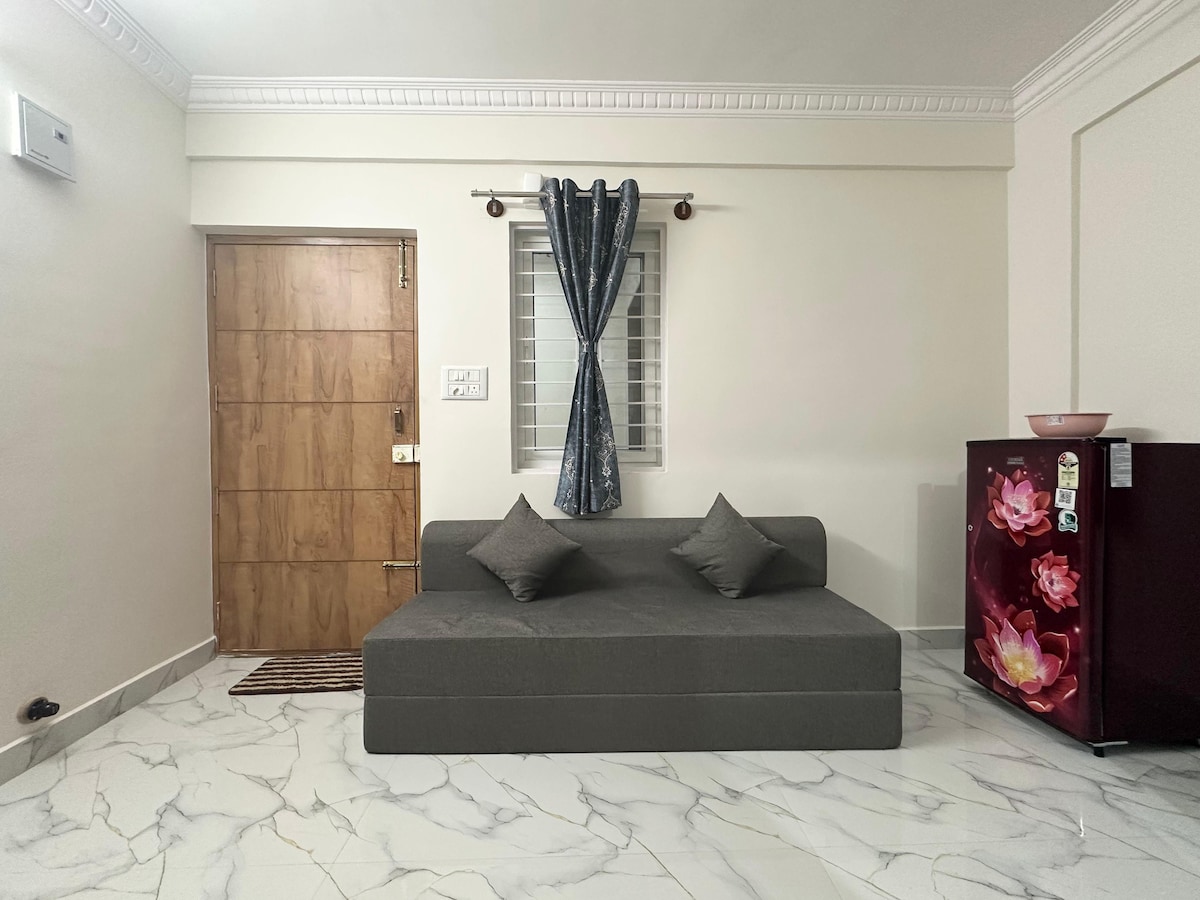 Calificación promedio: 5 de 5; 11 evaluacionesLuminoso y acogedor 1BHK | Bellandur - HSR Vicinity
