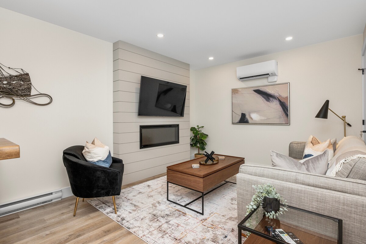 Disfruta de una experiencia de lujo en esta suite céntrica en el sótano. Los acabados de diseño de este dormitorio más sofá cama son ideales para un grupo pequeño que quiera un lugar más pequeño, pero bien pensado, cerca del centro de la ciudad. Sin perder el ritmo, esta suite Garden tiene todo lo necesario para una estancia cómoda: - Cocina totalmente equipada. - Baño espacioso. - Sala de estar con smart TV de 50 pulgadas. - Cómoda cama tamaño queen y un impresionante sofá tamaño queen (colchón grueso). La mejor parte: tiene estacionamiento GRATUITO.