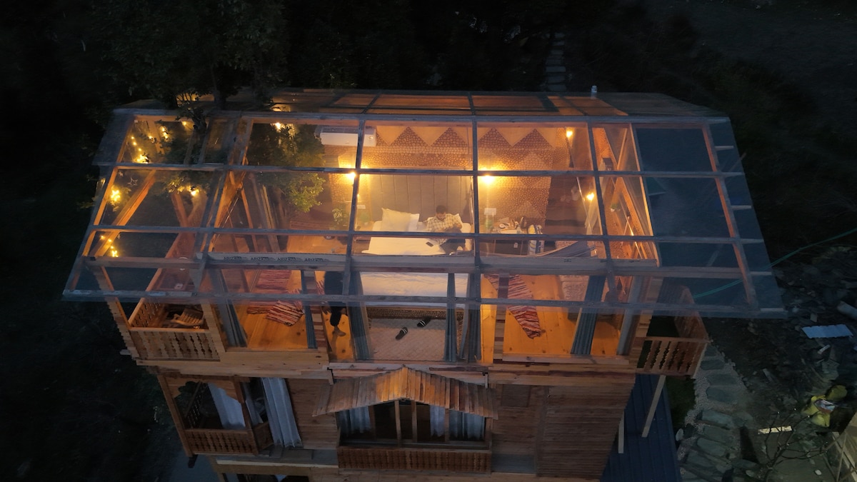H202 Glasshouse + lujoso jacuzzi Hamta, Manali.
