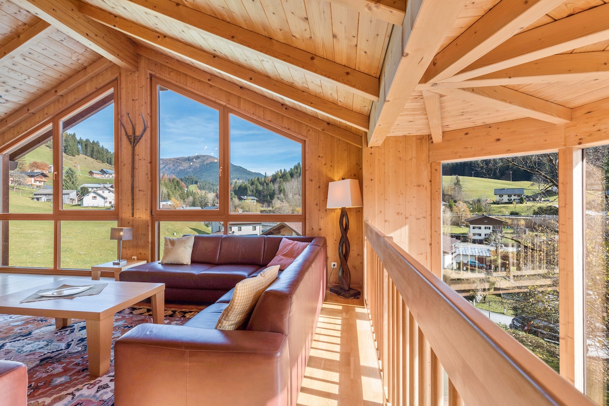 Una casa de vacaciones romántica de estilo rural con vistas impresionantes de las montañas circundantes Siéntate y relájate con una copa de vino en nuestra terraza en la azotea, disfruta de un desayuno tranquilo en el patio trasero o disfruta de las impresionantes cordilleras austriacas directamente desde la ventana de tu dormitorio. The Hunter 's Lodge impresiona no solo por su ubicación idílica pero céntrica, sino también por sus acogedores interiores de estilo rural, que proporcionan el telón de fondo ideal para unas relajadas vacaciones familiares.