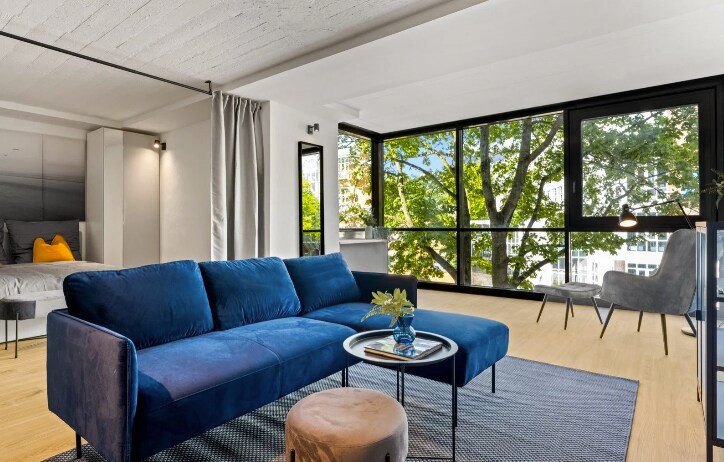This spacious, loft-style flat is centrally located between the popular Schanze/Altona districts – right in the heart of the action, yet quietly tucked away in a green courtyard. The bedroom offers a relaxing retreat, while the living/working/dining area with its own tea/coffee station invites you to linger. The large terrace with seating area is a wonderful place to relax. PLEASE NOTE: The entrance area (living/dining area) is passed through when coming and going, and the kitchen is shared.