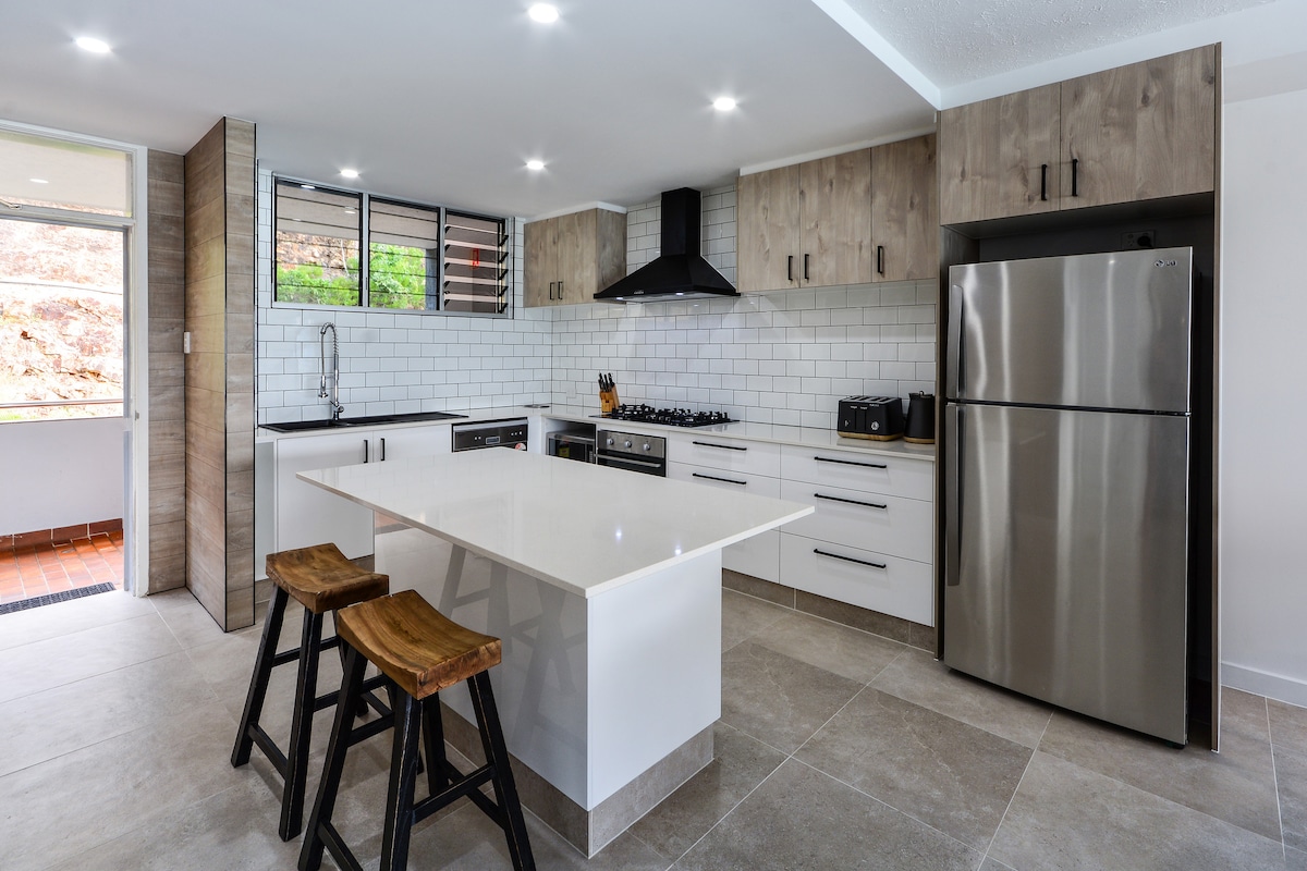 Fabulosa ubicación cerca de Marina Tavern y One Tree Hill. Casa adosada privada totalmente independiente, capacidad para 5 personas con cocina completa y lavandería. Incluye un buggy para explorar toda la isla de Hamilton. Nuestro alojamiento es 100 % apto para familias y es ideal para parejas. Servicio de aparcacoches desde y hacia el aeropuerto. Se proporcionan toallas de cama, baño y playa junto con los consumibles básicos iniciales. Wifi GRATUITO y aire acondicionado en todas las habitaciones. Nuestra casa tiene un asiento infantil para cochecito, cuna portátil y silla alta disponibles bajo petición.