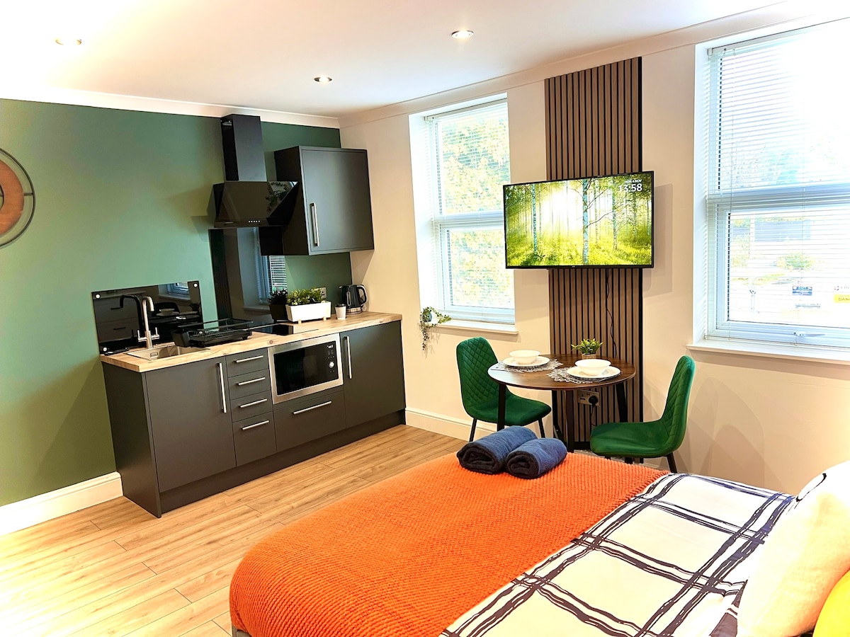 Despiértate y levanta las persianas automáticas directamente desde tu CAMA SUPERKING y déjate cautivar por la VISTA del hermoso valle de Darent que se despliega ante ti a través de las ventanas panorámicas. Acurrúcate en un acogedor sillón con un libro, escucha tu música favorita o EXPLORA muchos senderos a lo largo del valle. Pasea por los campos hasta los pueblos de Otford y Shoreham, visita CASAS HISTÓRICAS y viñedos o simplemente quédate en casa y disfruta de un espacioso apartamento estudio mientras contemplas la puesta de sol con una copa de vino.