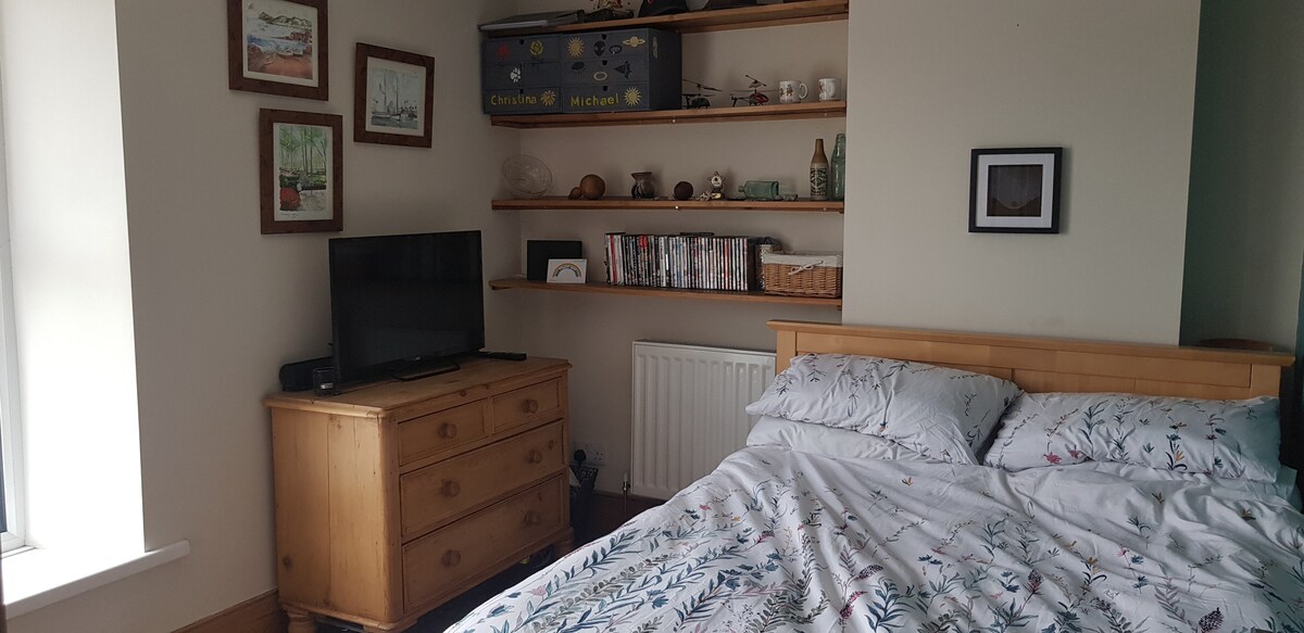 The Oaks está adjunto a nuestra vivienda. Cuenta con su propia entrada privada desde el exterior y las puertas internas están cerradas con llave. Se trata de una habitación con baño privado, como una habitación de hotel. TEN EN CUENTA QUE ESTA ES NUESTRA CASA FAMILIAR Y NO ES ADECUADA PARA UNA NOCHE ROMÁNTICA/APASIONADA, SINO PARA HUÉSPEDES QUE DESEAN UNA ESCAPADA TRANQUILA. Las escaleras de madera conducen a este dormitorio del primer piso que tiene su propia zona cubierta con muebles de exterior para disfrutar de las fantásticas vistas.