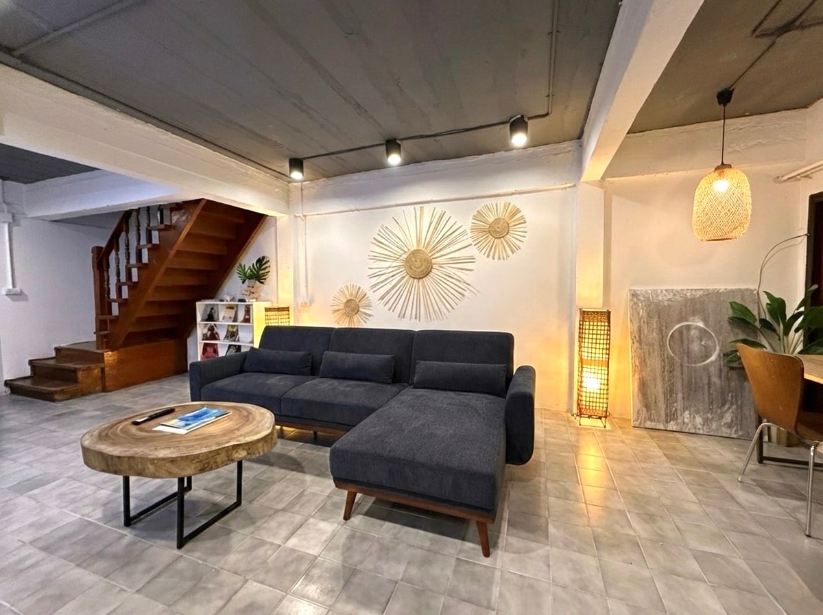 Lanna Charm es una casa adosada cálida y acogedora decorada en un elegante estilo de herencia Lanna. El espacio ofrece un gran dormitorio tipo estudio con aire acondicionado y dos camas tamaño king, además de un dormitorio individual privado con ventilador, ideal para familias o grupos pequeños. Disfruta de una cocina espaciosa y bien equipada y de un ambiente tranquilo, a solo 2 km de Nimmanhaemin. Perfecto para relajarse después de un día en la ciudad, con espacio, comodidad y ubicación que hacen que cada estancia sea sin esfuerzo. Esperamos recibirte.
