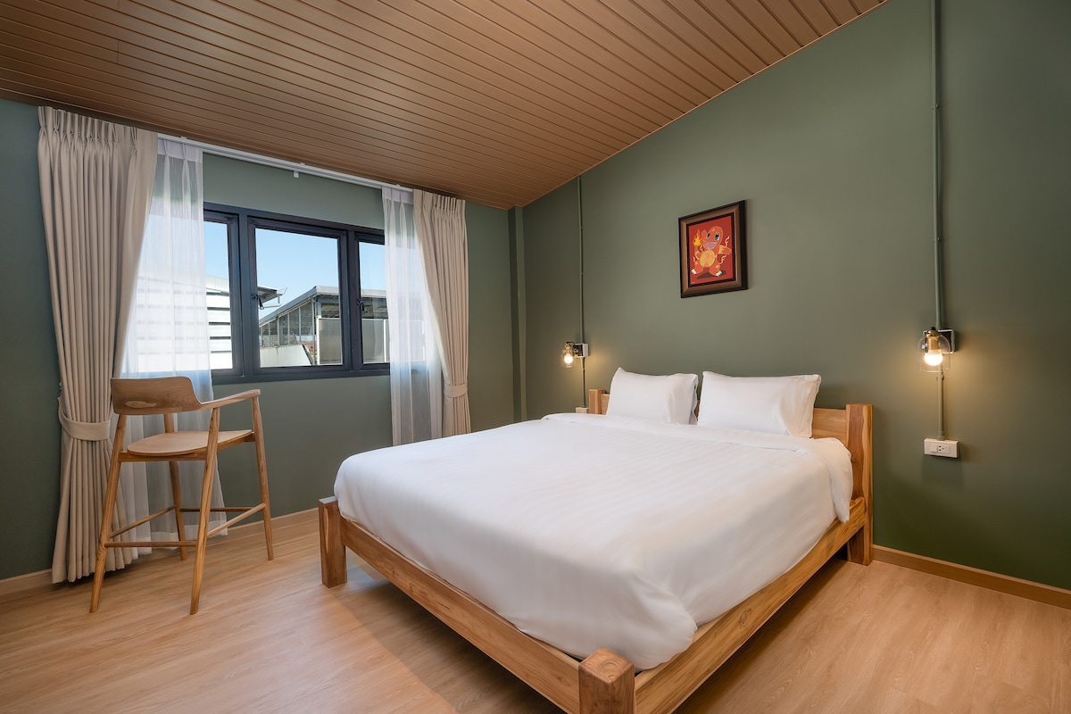 Relax at the guesthouse "Blue of Nature" near Chiang Mai City. In a peaceful village and built in 2023, this fresh, modern space is behind the main house, enveloped by greenery. It's brand new with bright windows, a cozy king bed, a small kitchen with essentials, and a clean bathroom. Enjoy amenities like TV, A/C, and fast internet. It's near the Royal Park Rajapruek. Enjoy made-in-order Thai meals from our chef with own organic garden herbs.