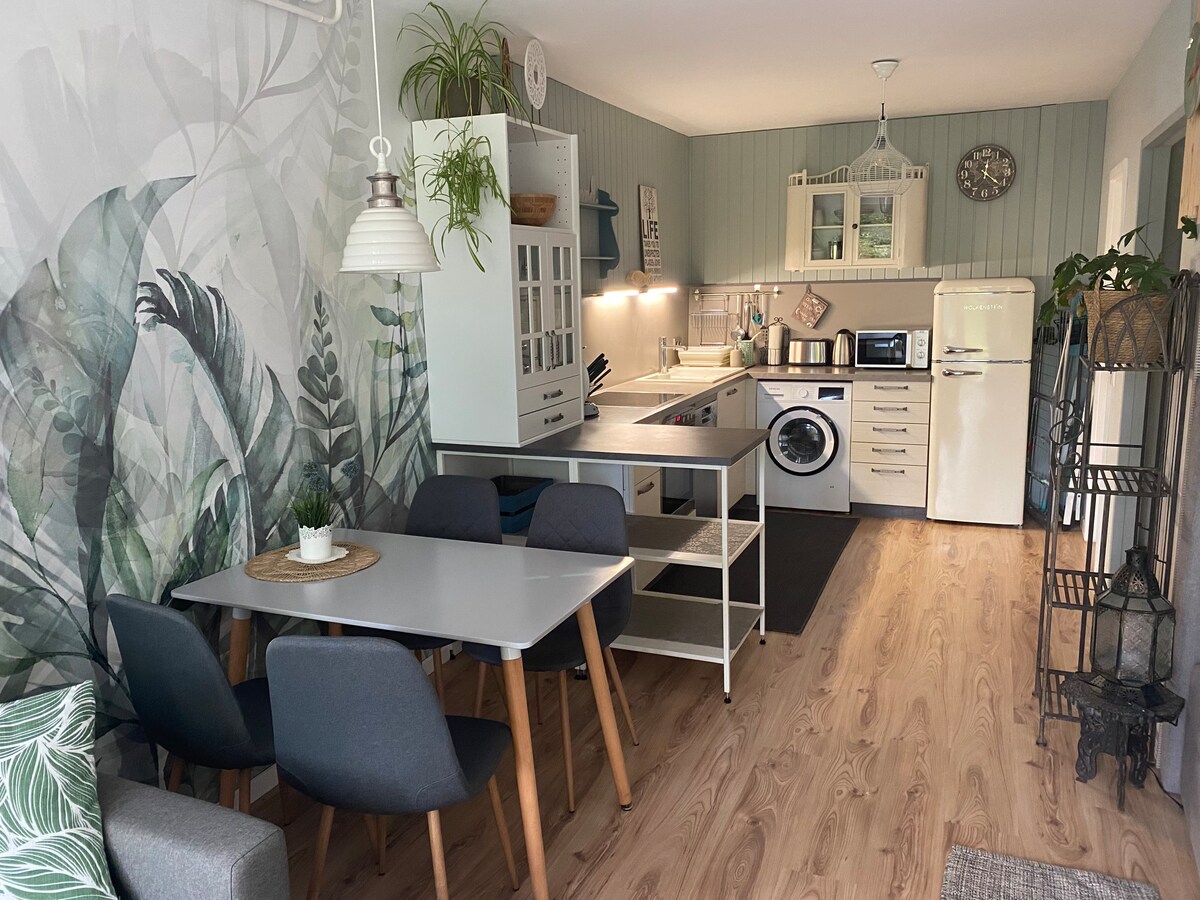 Nuestro luminoso y acogedor apartamento de 2 habitaciones-El apartamento le invita a quedarse unos 42 metros cuadrados. El apartamento consta de un dormitorio, una gran sala de estar con cocina abierta y moderna, un baño y dos grandes terrazas con vistas a un jardín idílico. Se encuentra a solo 800 m de la playa y del centro de la ciudad. Si no te apetece ir a la playa, puedes dar un paseo por el bosque adyacente y luego relajarte en la sauna comunitaria.