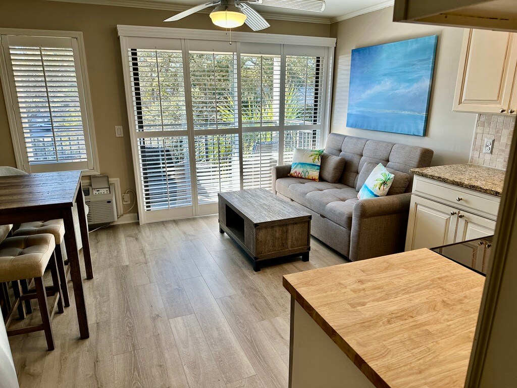 ¡Bienvenido al apartamento de 1 dormitorio y 1 baño con vistas al mar recientemente renovado ubicado en HHI Beach & Tennis Resort! Esta ubicación privilegiada ofrece unas vistas impresionantes y está a solo un minuto a pie de la playa. Las comodidades incluyen 3 restaurantes, piscina junto a la playa, parque infantil, zonas de parrilla, gimnasio y alquiler de bicicletas. Tu alquiler incluye acceso a servicios de streaming populares en los 4 televisores del apartamento, lo que garantiza que puedas relajarte después de un día de aventura. Estamos aquí para hacer que tus vacaciones sean perfectas y siempre estamos disponibles para resolver dudas.