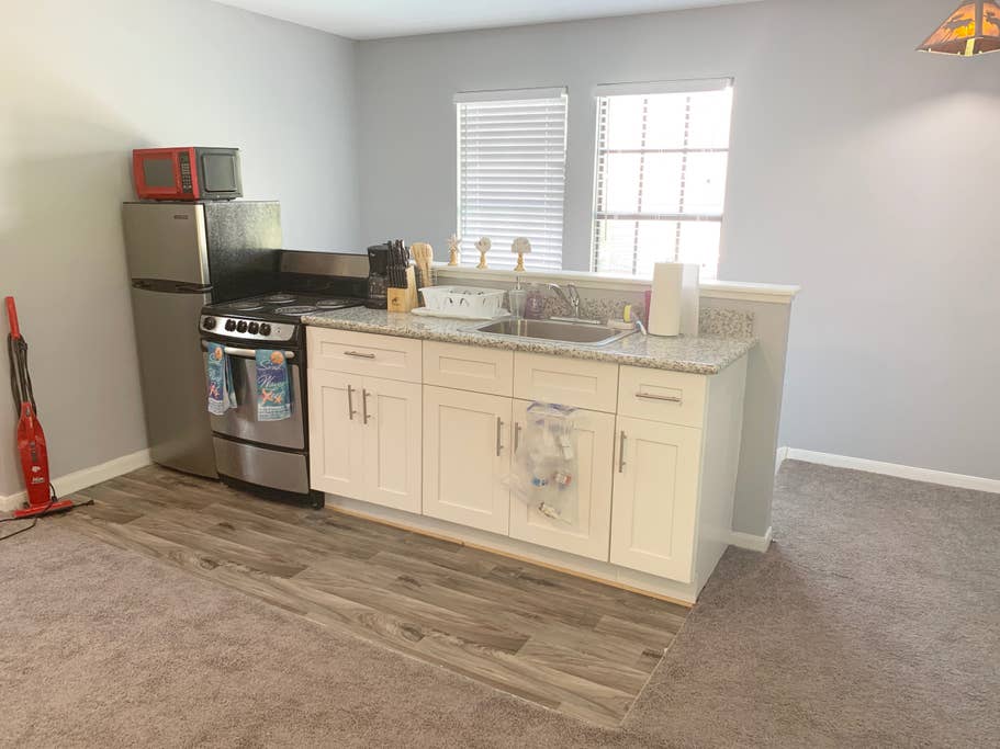 The newly built studio is about 500 sq ft You have queen bed, very quiet mini split ac, full kitchen (except dishwasher), TV with Hulu,amazon prime, local channels, WiFi etc. House is centrally located in jersey village which is at intersection of 290 and beltway 8. It is about 20 minutes to iah, 20 minutes to galleria, 30 minutes to downtown, nrg stadium and medical center. Neighborhood is very quiet residential area.