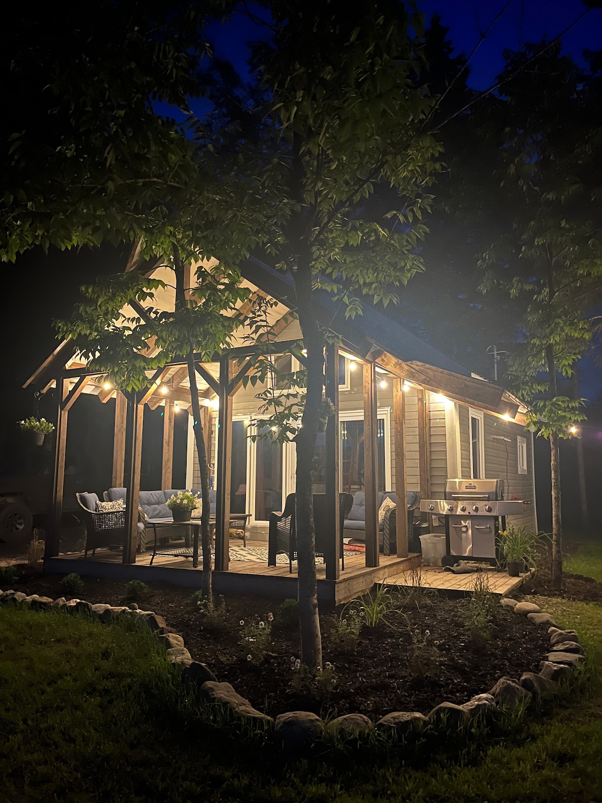 Bienvenido a nuestra cabaña junto al río, un refugio natural para la tranquilidad. Ubicada en el bosque, ofrece vistas serenas al río de día y de noche. Relájate en nuestro spa al aire libre, perfecto para los entusiastas de la naturaleza con senderos cercanos para aventuras durante todo el año. La cabaña garantiza la privacidad, pero está a pocos minutos de Grand-Falls. En el interior, encontrarás un espacio meticulosamente diseñado con un loft con vistas al río, una cocina de acero inoxidable y una acogedora sala de estar con comodidades modernas. Ven a rejuvenecer en nuestro paraíso natural.