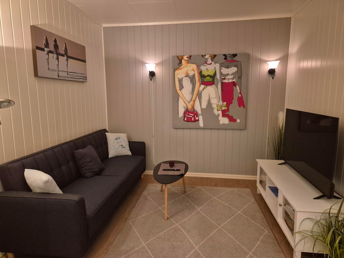 Acogedor apartamento céntrico en Harstad. Registro fácil con cerradura de código. A 5 minutos caminando de la tienda/uit y a 10 minutos del centro de la ciudad. Un dormitorio con cama doble y sofá cama en la sala de estar. Cables de calefacción en todos los pisos, así que aquí no te congelarás. Incluye internet de alta velocidad. Cocina bien equipada con lo que necesitas para cocinar por tu cuenta. Estacionamiento gratuito en el exterior del apartamento. No hay televisión lineal disponible, pero puedes ver televisión en línea, Netflix, etc. si tienes tu propia suscripción.