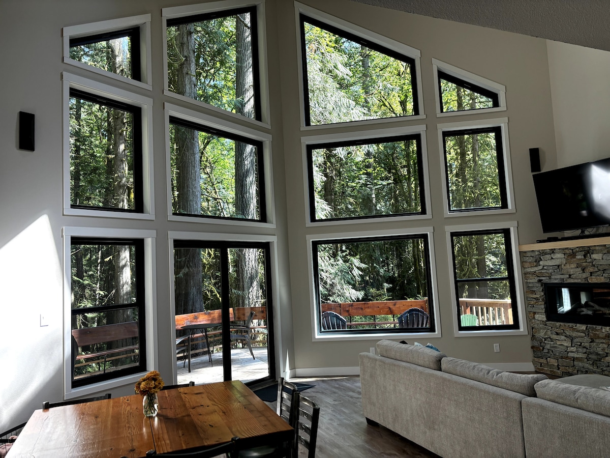 Bienvenido a mi hermosa casa en una propiedad arbolada de 5 acres que es perfecta para una persona o una pareja en la isla Harstine. Cocina grande, comedor, cama tamaño queen con sábanas acogedoras, baño completo, toallas, artículos de aseo, escritorios, libros, TV, wifi y juegos. Relájate con vistas al bosque, las aves y la vida silvestre. Terrazas delanteras y traseras con juegos de patio. Pasea por el bosque o por los dos parques frente al mar de la isla. Se proporciona desayuno básico, café, té, aperitivos, condimentos y especias.