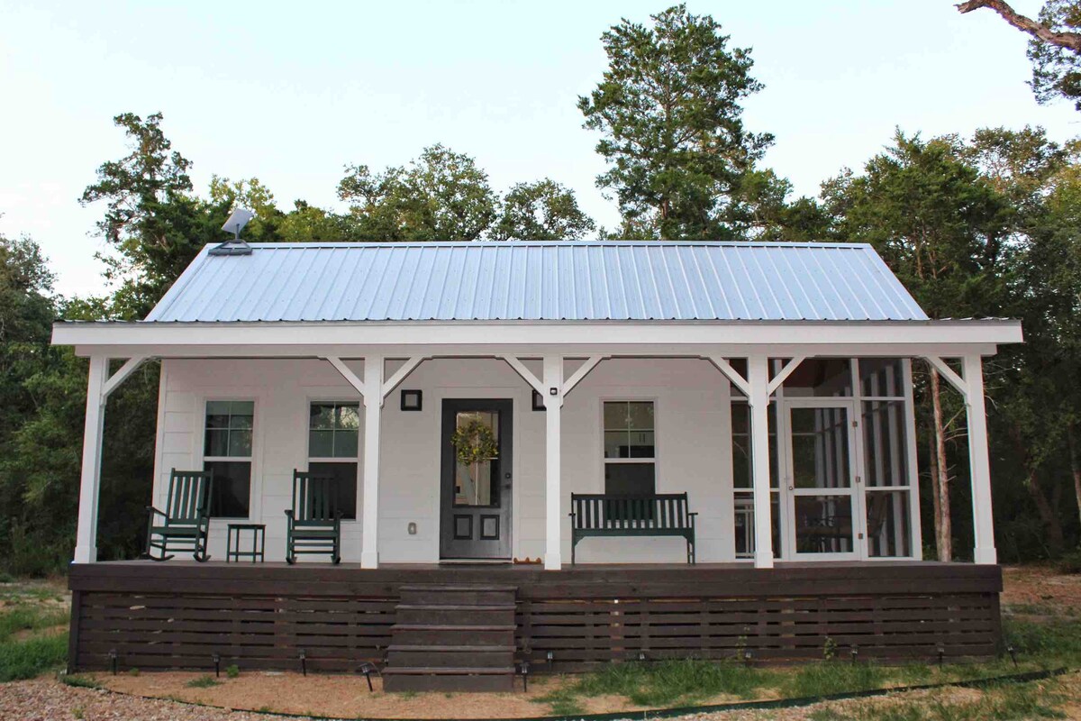 Relájate en esta moderna cabaña donde la naturaleza se encuentra con la comodidad. Disfruta de una experiencia interactiva con animales de granja amigables que buscan mascotas y golosinas. Sumérgete en las vistas del sereno estanque, las vacas pastando y los caballos. Explora senderos en áreas aisladas. Persianas con filtro de luz, aire acondicionado y wifi Starlink. Construido en 2023. Tenemos cerditos, mini cabras, vacas, caballos, burros y un labrador negro para saludar. Cerca del Circuito de las Américas, Bastrop, el Aeropuerto de Austin y Smithville.