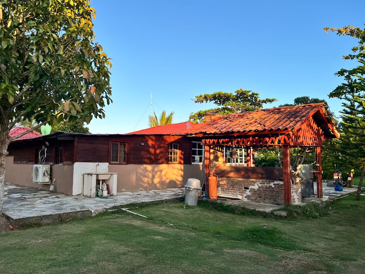 Villa Guzman, el lugar ideal y discreto para disfrutar unas vacaciones inolvidables en la Rep. Dom. A solo 45 minutos Aerop. Int. Las Americas y Megacentro, donde tendra las mejores tiendas, bancos y mas. Con 2 amplias habitaciones con A/C. Una con 2 camas grandes y otra con 1 cama grande. Sala comedor c/ TV. cocina. Piscina y 2 vestidores, 2 duchas ext. 1 baño interior cabina y 1 ext. Terraza ext. Terraza BBQ. Parqueo cerrado. Ambiente naturaleza y hermosa vista de Gansos. Planta propia.