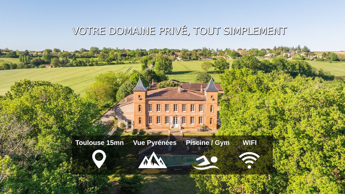 Castillo 15mn de Toulouse vista Pirineo y piscina
