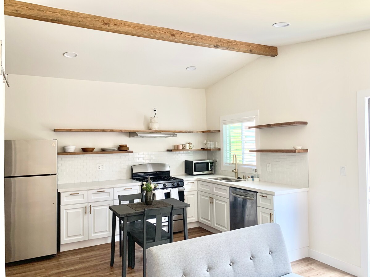 Esta moderna casa de campo de 500 pies cuadrados recién reformada, ubicada en un barrio seguro y transitable, es la escapada ideal para dos adultos. Con una cocina completa y un baño privado, este espacio luminoso y brillante tiene encimeras de cuarzo, suelos de madera, baño de baldosas de mármol, electrodomésticos y muebles nuevos. Perfecta para el trabajador remoto o viajero que visita, estamos ubicados a solo una milla del corazón de la moderna Culver City, a 6 millas de Santa Mónica y a 15 minutos de LAX.