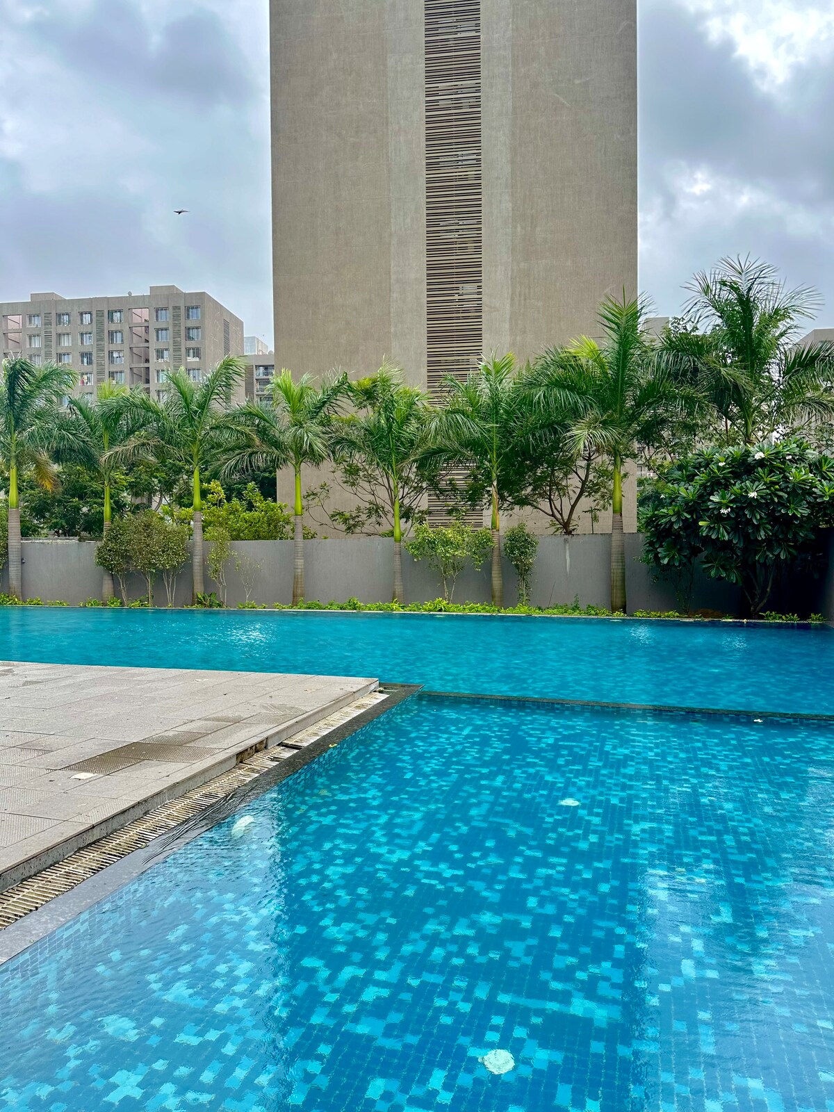 Es un apartamento estudio de llegada autónoma con Free WI Fl. adecuado para parejas no casadas, corporativas y familiares. No permitimos diferentes religiones. Tiene dos camas tamaño king, un sofá cama y baños adjuntos con balcón. Se encuentra cerca de la zona del aeropuerto internacional de Surat, así como de los centros comerciales cercanos. Las instalaciones de gravación como Ola y Uber también están disponibles fácilmente en esa zona. Es un apartamento de hotel. Los servicios son de pago, como piscina, tenis de mesa, gimnasio, mesa de billar.