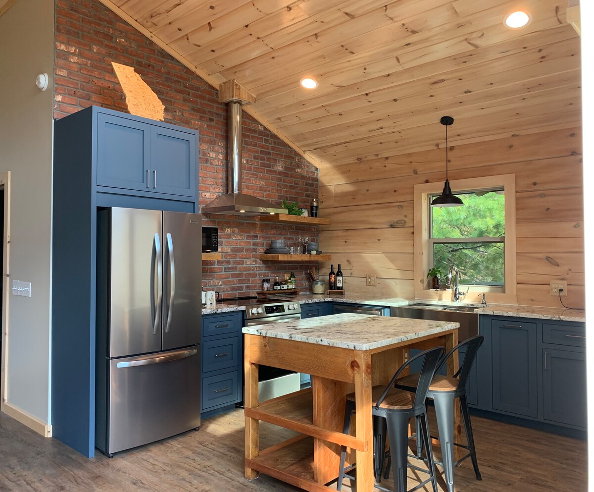 Relájate con estilo en esta moderna cabaña ubicada entre Helen y Dahlonega. Cerca de bodegas, senderismo, pesca y compras. Disfruta de más de un acre de privacidad, una amplia terraza y muebles de lujo. Perfecto para dos parejas o una familia, con dos dormitorios tamaño king con baño privado, televisores y grandes ventanales. Las literas extra largas son cómodas para adultos o adolescentes. El camino pavimentado y la entrada facilitan el acceso. ¡La escapada perfecta al norte de Georgia! STR-23-0073 Licencia comercial 4767
