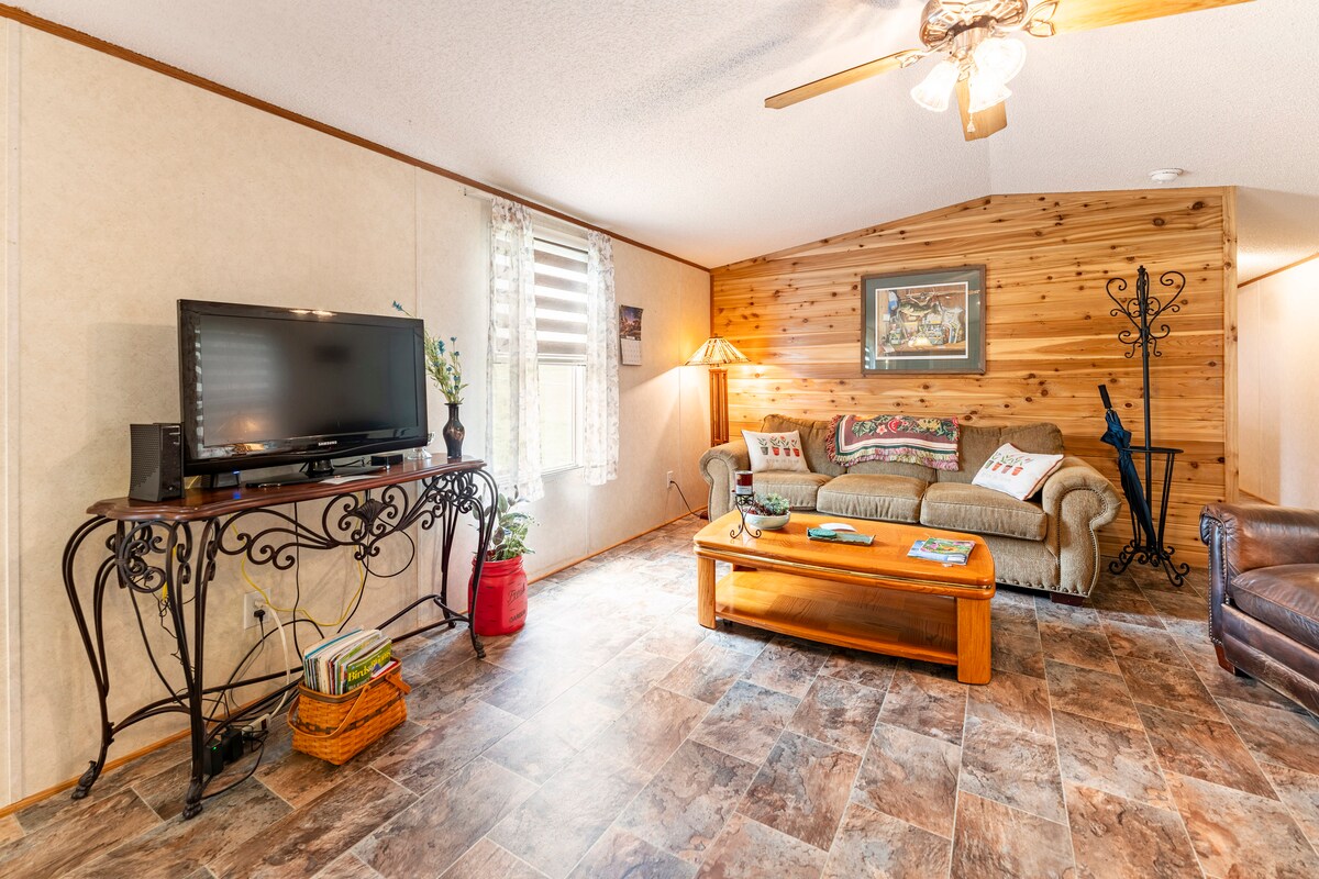 ¡Escápate a nuestra impresionante casa de lujo de 2 dormitorios y 1 baño, ubicada en un amplio terreno privado rodeado de árboles y naturaleza en el corazón de la ciudad! A solo una cuadra del Centro Médico del Condado de Henry, es perfecto tanto para la relajación como para la comodidad. Disfruta de internet de alta velocidad y un televisor inteligente de 65 pulgadas para el máximo entretenimiento. Cada dormitorio tamaño queen cuenta con edredones de plumas para una noche de sueño reparador. La cocina totalmente equipada, completa con dispensador de agua y hielo. ¡Tu escapada perfecta te espera!