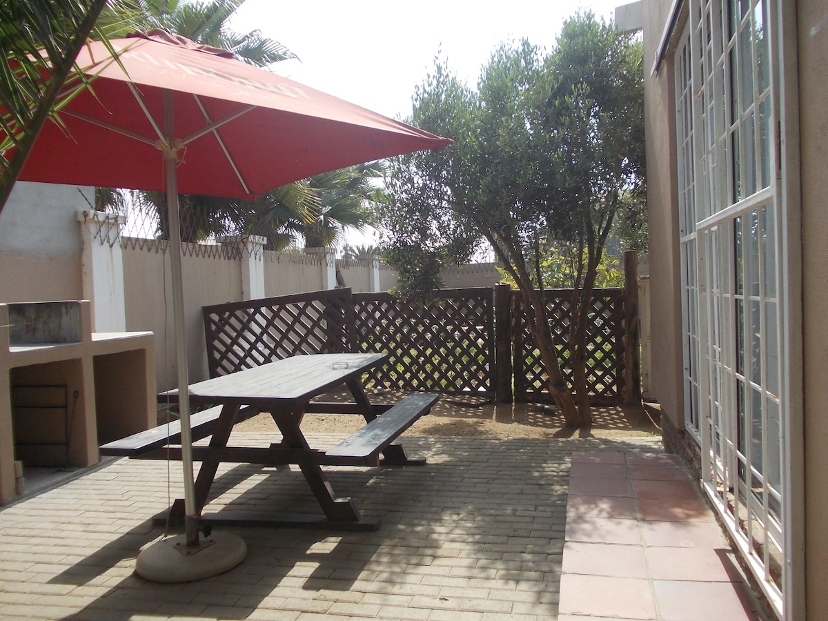 Unit has 2 bedrooms, 1 bathroom and an open-plan kitchen, dining room and lounge. Each flat has a lounge with a TV with selected DStv channels and Wi-Fi. Outside, there are private garden with outdoor dining furniture, and braai facilities.