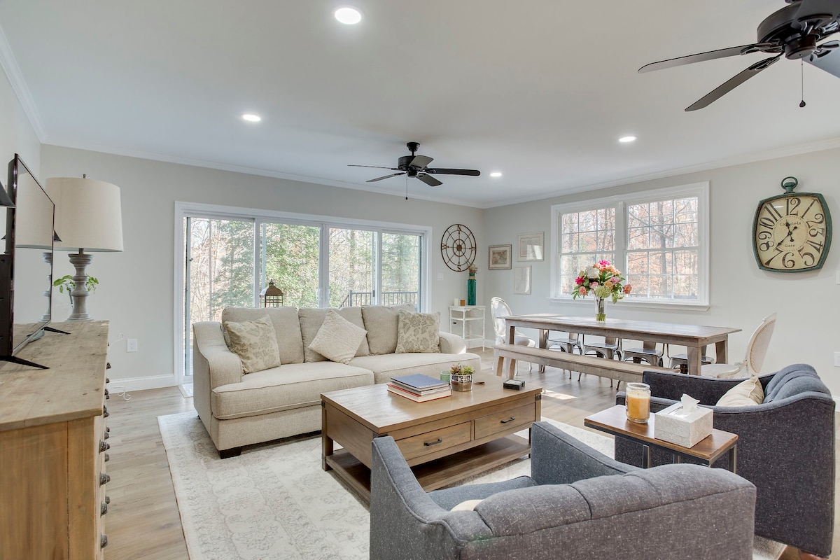 Nuestra encantadora casa de 1919, rodeada de 50 acres de tierra preservada, se encuentra en un distrito histórico y a un paso del sendero para caminatas/bicicletas NCR. Tenemos neumáticos para flotar por el río Gunpowder, que serpentea alrededor de nuestra propiedad y es accesible a pie. ¡El carril bici es precioso! La cervecería Inverness se encuentra a 5 minutos, la granja Starbright es una gloriosa granja de lavanda a 15 minutos al norte, Boordy Vineyards, una bodega de gestión familiar, está a 20 minutos al este, ¡y Ladew Toipiary Gardens es otra joya para contemplar!