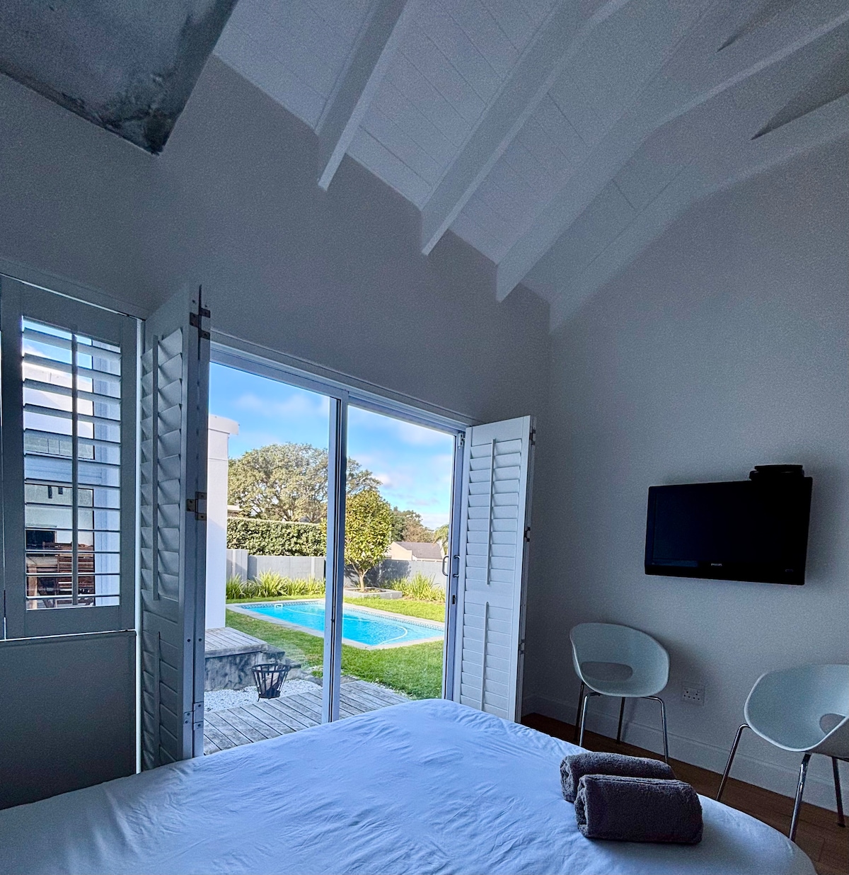 Moderna habitación con ropa de cama blanca y fresca, cama de lujo, persianas, cocina pequeña y baño con ducha y accesorios de primera calidad. Nuestro acogedor y acogedor lugar es ideal para parejas, aventureros solitarios y viajeros de negocios. Situado en un barrio de lujo a las puertas de excelentes senderos para andar en bicicleta de montaña, senderismo o senderismo. A 5 minutos en auto de las playas de bandera azul.