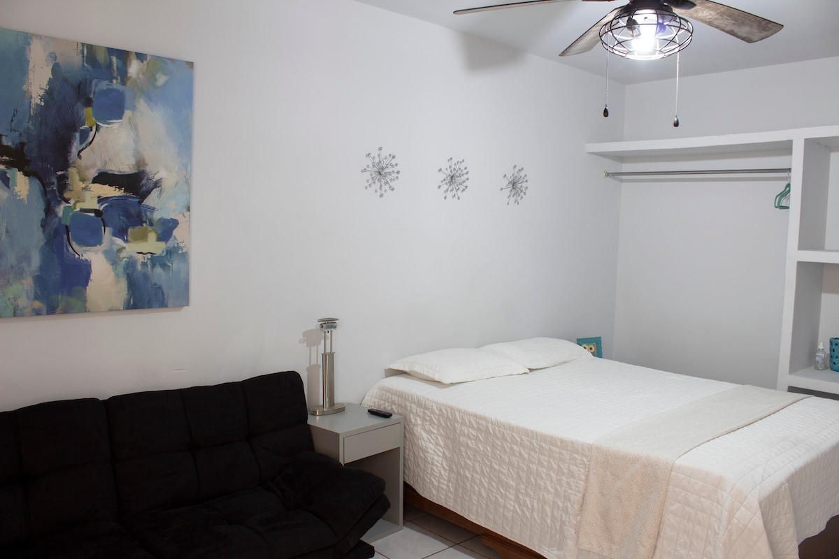 Este alojamiento único cuenta con espacio suficiente para una tranquila estancia en compañía de los tuyos. Pensado para tu comodidad con mucho espacio y complementos para que te sientas como en casa, con internet, tv, sofá cama, una amplia estancia y dos habitaciones. Cercano a lugares de interés como el Consulado Americano, Club de Golf y hospitales. Con supermercado en la parte inferior, cafetería, gasolinera y banco. En una estancia de más de 5 noches se agrega botella de vino de bienvenida !