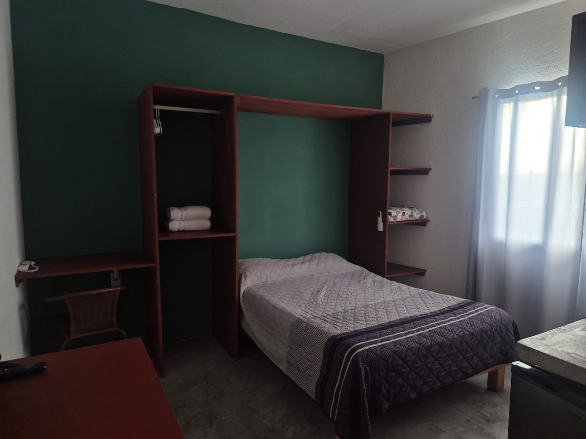 Habitacion en segunda planta con terraza, ubicado en una de las mejores zonas de Veracruz, cerca de Costco tan solo a 2 cuadras del mar. Ingreso con código, ingresa a la hora que mejor se te acomode (después del check in). Cuenta con A.C., WiFi, smart TV, baño independiente, closet, , secador de cabello, frigobar, microondas y un pequeño escritorio.