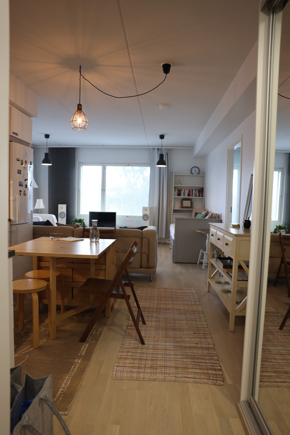 Apartamento nuevo con la mejor ubicación en Tikkurila. A solo 250 metros de la estación de trenes de Tikkurila. Conexión en tren a 15 minutos del centro de Helsinki y a 10 minutos del aeropuerto. Rodeado de supermercados, cafeterías, restaurantes, etc. Wifi gratis. Cafetera de cápsulas con café de cortesía. Cocina totalmente equipada. Luces atenuables. Estudio moderno y elegante con todo lo necesario.