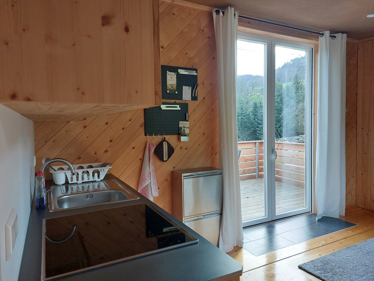 Charmante vollausgestattete Einliegerwohnung von 40qm - 1,5 ZKB (Bad, Wohnküche und Schlafzimmer). Neue Westterasse mit Launchmöbeln. Naturnah gelegen, mit sehr guter Anbindung (Bushaltestelle fußläufig, ca. 150m) nach Freiburg. Optimale Wohnlage für Wanderungen, Fahrradtouren (Station für Leihfahrräder in ca. 300m) und Ausflüge in Schwarzwald, Kaiserstuhl, Elsass oder Europa-Park. Ideal für 2 Personen, max. Belegung mit 4 Personen. Parkplatz, WLAN, Küche, WaMa, SpüMa, und TV vorhanden.