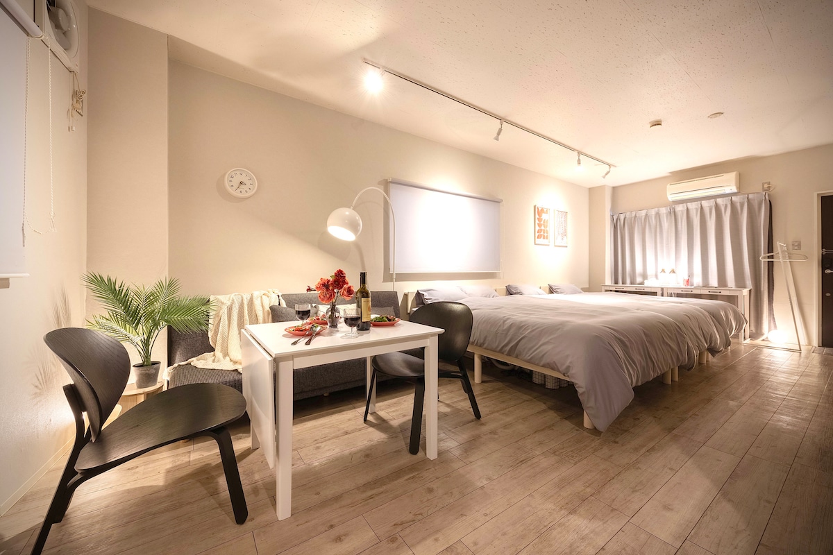 Estudio Japandi tranquilo y nuevo|Cerca de JR・metro|Lavadora y secadora|Ascensor|Almacenamiento de equipaje
