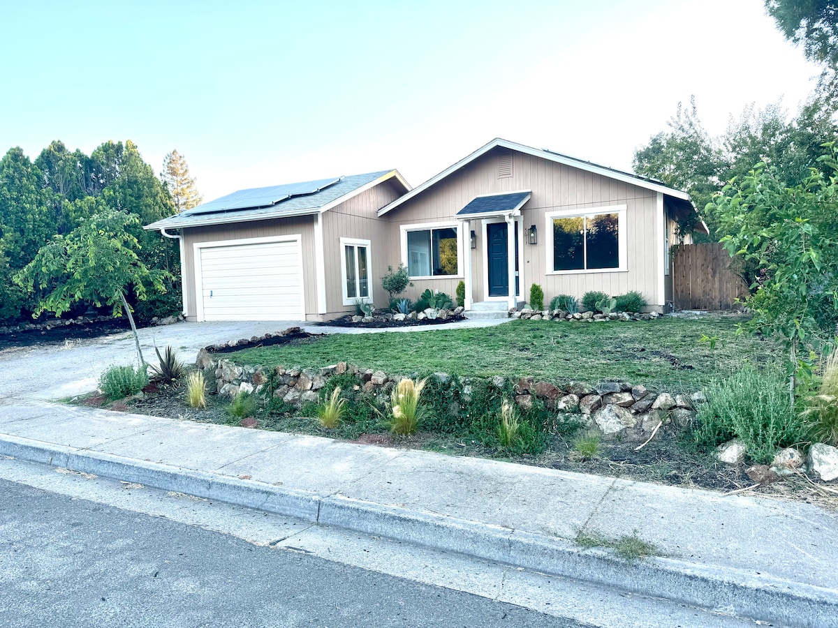Bienvenido a nuestra moderna cabaña de granja recientemente renovada, ubicada en un acre privado rodeado de majestuosos abetos de Douglas de 200 pies. Disfruta del arroyo estacional que adorna el patio trasero durante la temporada de lluvias, proporcionando un refugio tranquilo. Perfecta para una escapada tranquila o un trabajo remoto productivo, nuestra cabaña cuenta con internet de alta velocidad y comodidades modernas. Explora las aventuras de senderismo, ciclismo y natación de Cobb Mountain, todo a poca distancia.