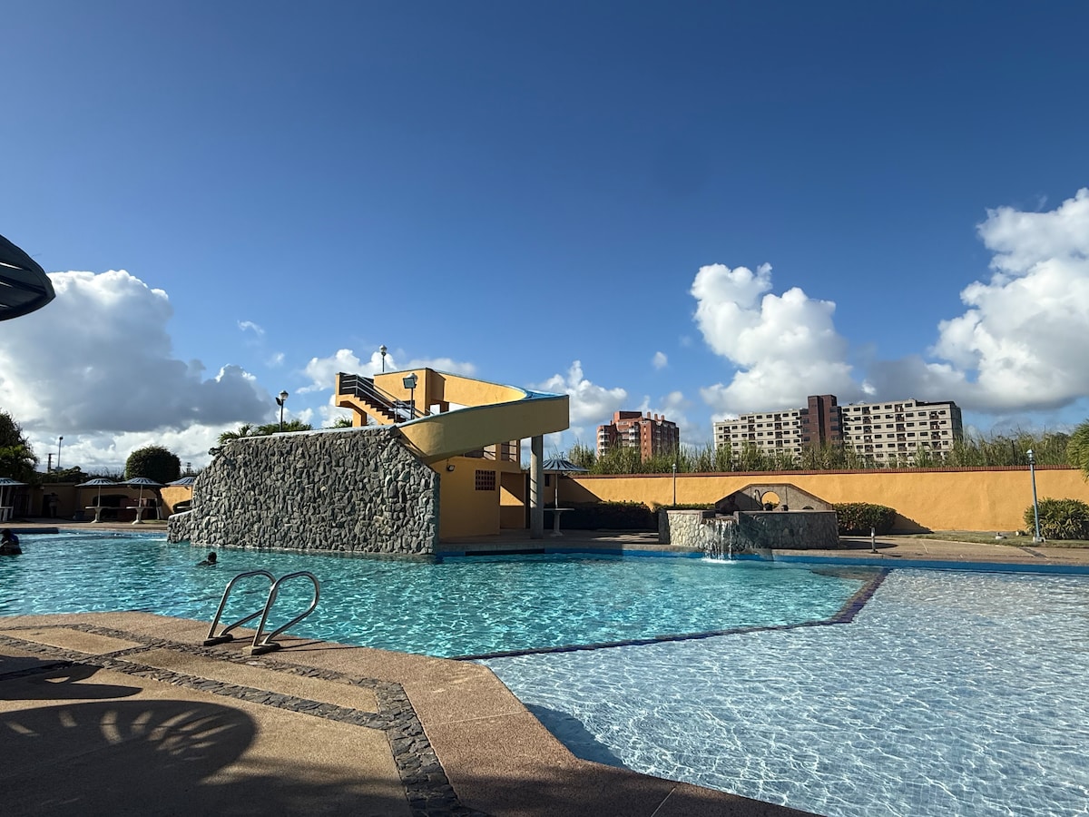 Hasta 5 personas – 2 habitaciones – 2 baños – Piscina + Tobogán – Acceso directo al mar Disfruta unos días increíbles en uno de los condominios más completos de Higuerote. Aquí lo tienes todo: piscina enorme, áreas verdes, vista al mar y un tobogán que encanta a grandes y pequeños.
