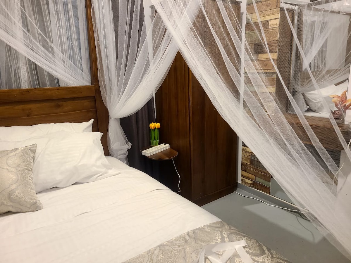 Bienvenido al acogedor primer piso de Susha Villa, ubicado en la tranquila zona turística de Hikkaduwa. Esta encantadora villa de madera cuenta con ventanas de parrilla y pisos de baldosas para una estancia cómoda. Ofrece dos dormitorios, un baño y una acogedora sala de estar-comedor, junto con una pequeña cocina para comidas ligeras. Ubicado en una calle tranquila cerca de la laguna, está a poca distancia a pie de restaurantes, tiendas y mercados de pescado. Nota:Los huéspedes deben subir escaleras para acceder al primer piso. ¡Disfruta de tu estancia en Susha Villa!