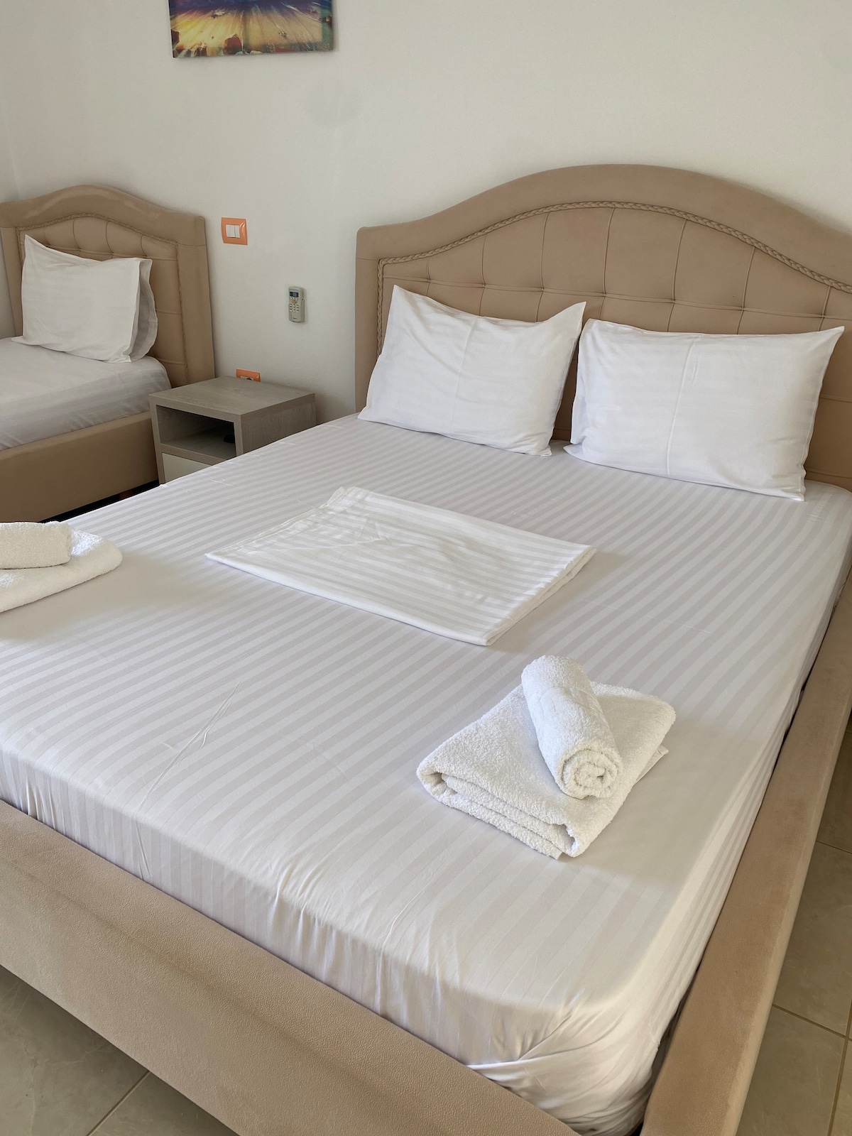 Nuevo hotel boutique moderno en el corazón de Ksamil Sé una de las primeras personas en experimentar nuestro hotel boutique recién inaugurado, a solo unos pasos de las impresionantes playas de Ksamil. Diseñadas cuidadosamente con un estilo moderno y relajado, cada habitación cuenta con tonos neutros suaves, muebles cómodos y un balcón privado para relajarse. Con clubes de playa, restaurantes y tiendas a pocos pasos, es la base perfecta para una escapada costera relajada. Acomódate y disfruta de lo mejor de Ksamil con comodidad y estilo.