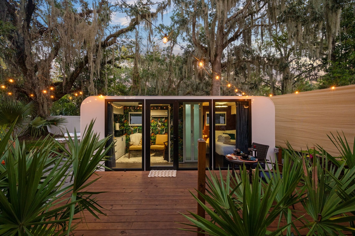 Has encontrado tu acogedor oasis escondido bajo un antiguo roble en un exuberante patio tropical privado en el distrito histórico de St. Augustine. Siéntate junto a la fuente, alimenta a las tortugas que deambulan durante el día o disfruta del fuego y de las miles de pequeñas luces reflejadas en el dosel de los árboles por la noche. Este pequeño estudio ejemplifica el atractivo de la vida en miniatura: compacto, limpio, eficiente y conveniente. El patio está a pocos pasos de todas las tiendas, restaurantes y atracciones de los distritos históricos.