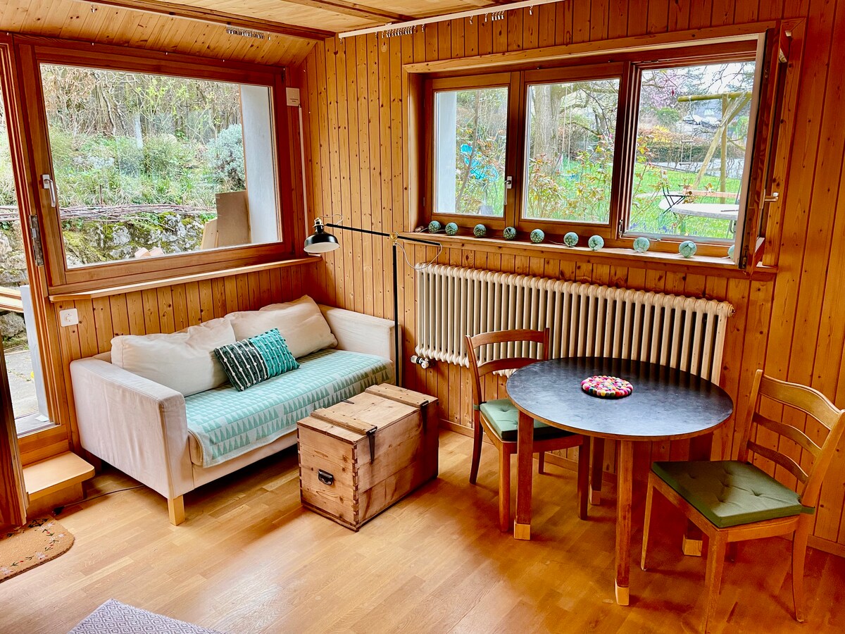 Nuestra casa de madera irradia calidez y se encuentra en una zona tranquila, en medio de un gran jardín con bosque adyacente. Se puede llegar a Basilea en unos 25 minutos en transporte público. El Goetheanum está a 5 minutos a pie, las ruinas de Dorneck a la vuelta de la esquina.